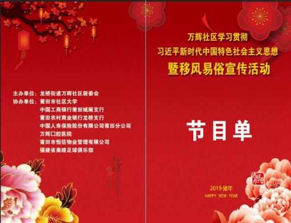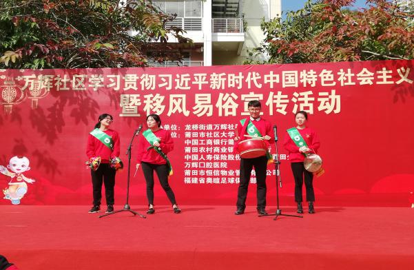 莆田市社区大学在城厢区龙桥街道万辉社区协助居委会开展多项活动,2018年至今为老年人举办健康系列讲座、组建民族舞队、辅导有地方特色的民乐十音八乐、协办学习新时代思想暨移风易俗宣传等活动,今年将加大力度,不断探索更多适合居民的文化教育项目。