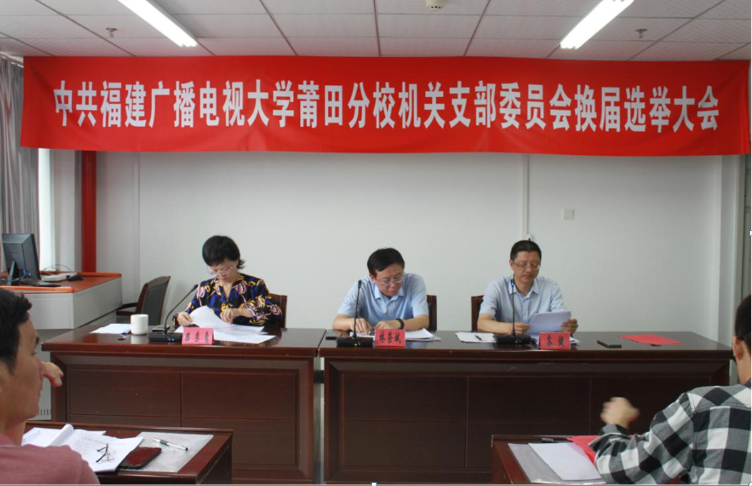 7月3日上午,福建广播电视大学莆田分校机关党支部召开换届选举大会,主要议程是听取委员会工作报告,选举产生新一届委员会。莆田电大党委书记林荣斌、副书记苏健,以及党支部全体党员出席大会。会议由苏健副书记主持。