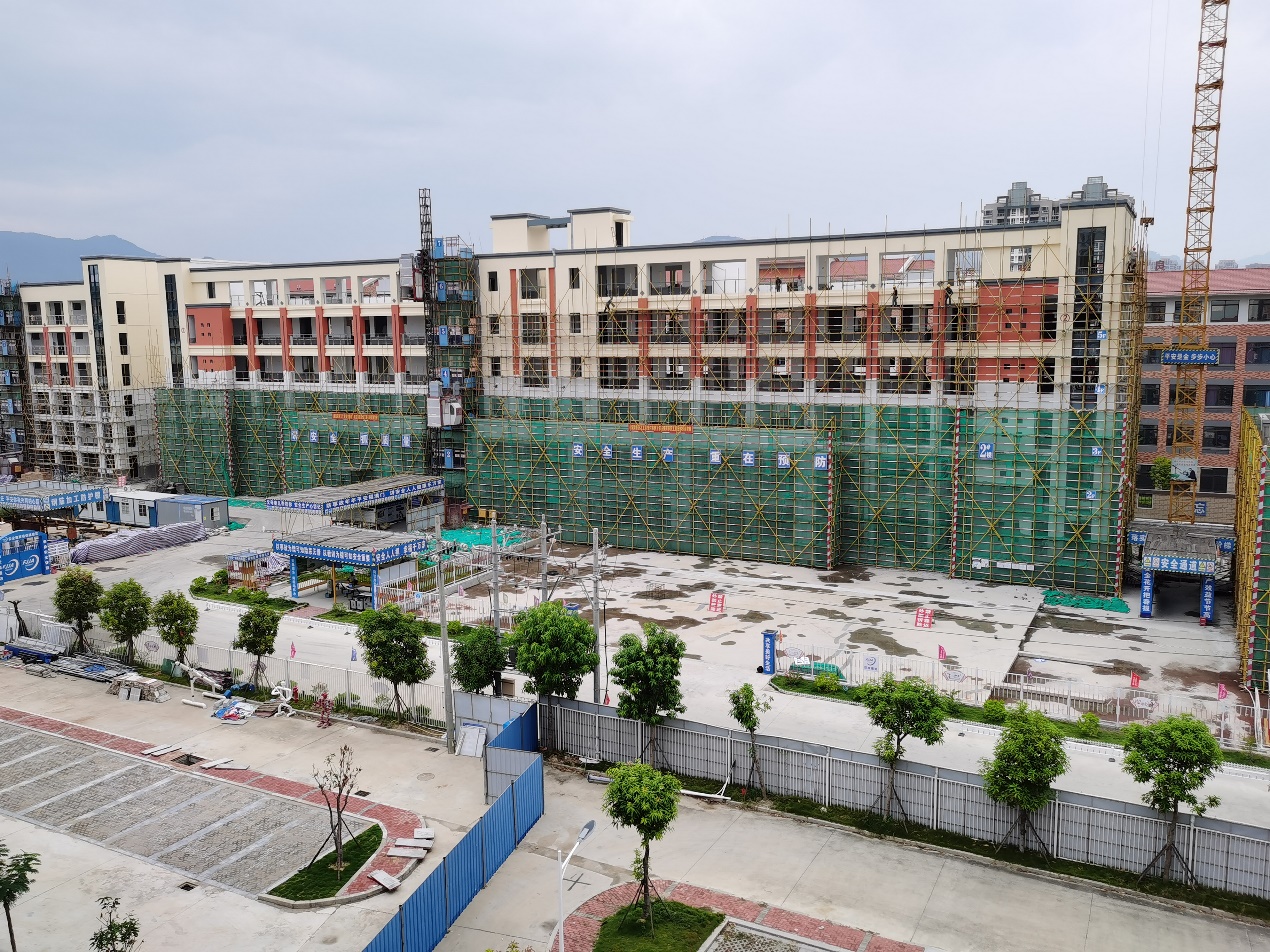 目前综合楼外墙已经开始落架,室内粉刷完成,部分层内墙开始腻子施工,教学楼外架已经拆完3层,室内铺砖开始施工,内墙腻子涂料开始施工,栏杆等已基本完成;宿舍楼外架已经拆完3层,室内铺砖开始施工,内墙腻子涂料已完成一半,栏杆、铝合金已经基本安装完成;餐厅楼外架已经拆除完毕,正开始进行室外工程施工,整个项目预计年底完工,明年完成整体搬迁,将极大改善莆田电大的办公条件,提升学校形象。