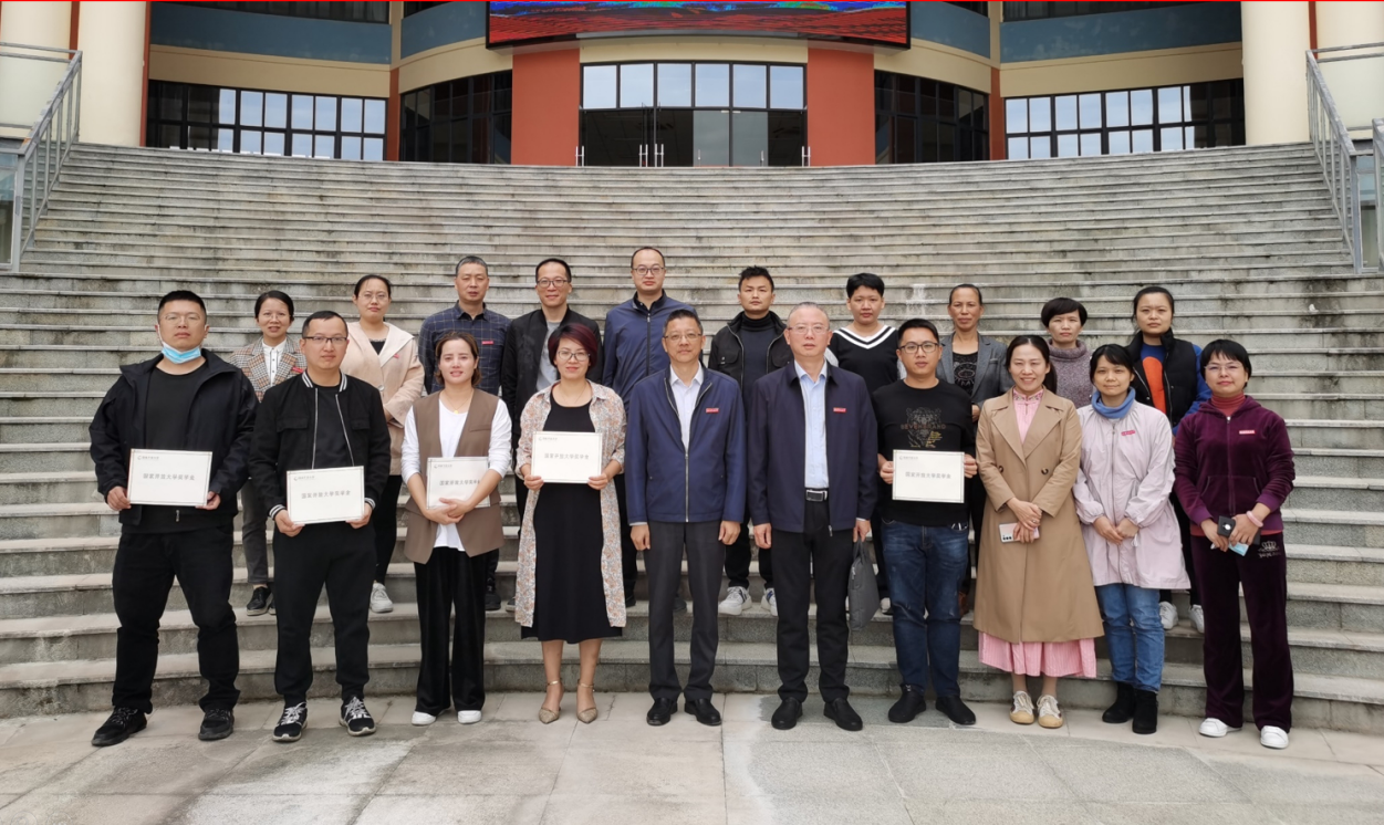 教务处陈金瑞主任与获得学士学位的毕业生代表在主会场合影