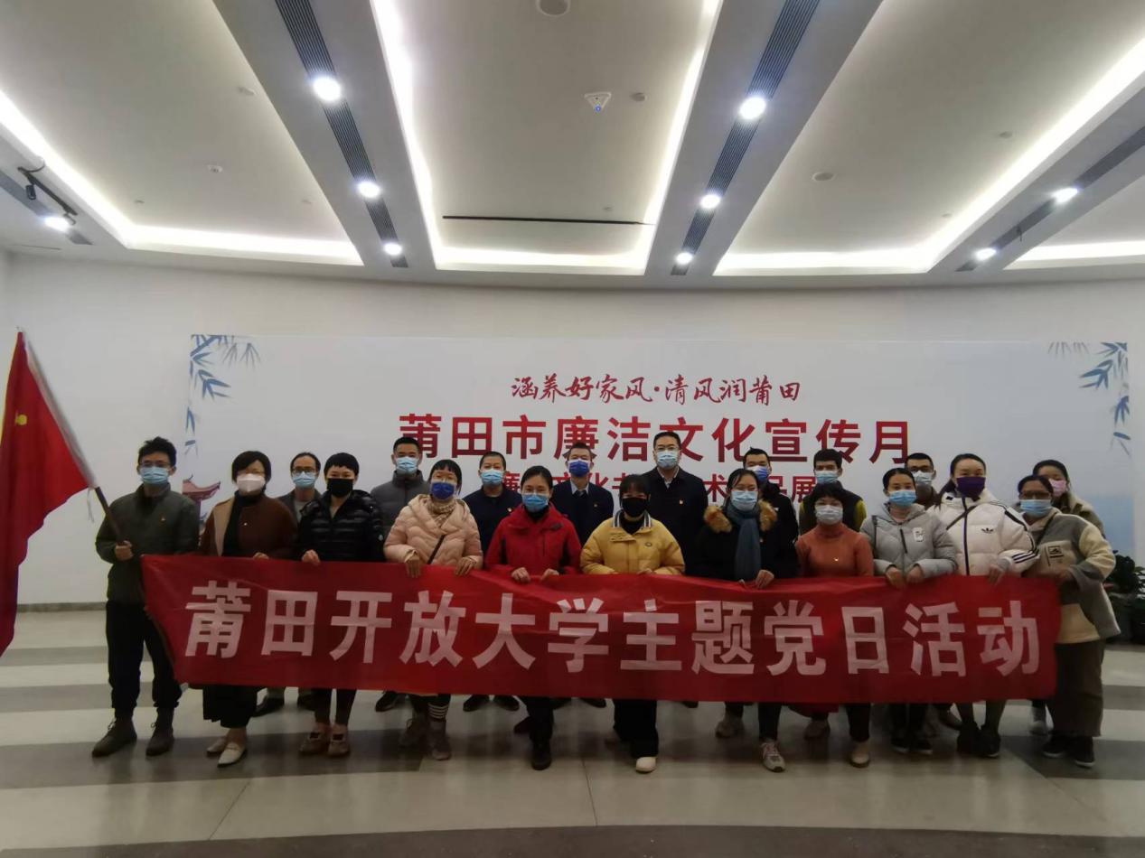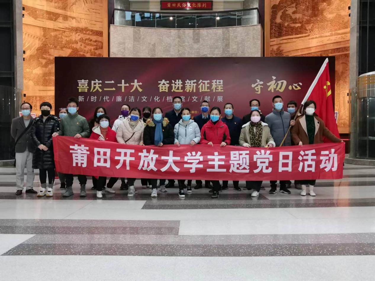 为进一步深入学习宣传贯彻党的二十大精神,全面推进全面从严治党。12月14日下午,莆田开放大学组织党员干部20多名到市博物馆开展廉洁文化宣传月活动暨12月份主题党日活动,进一步激发党员干部立德树人、坚持办好开放教育的动力和热情。