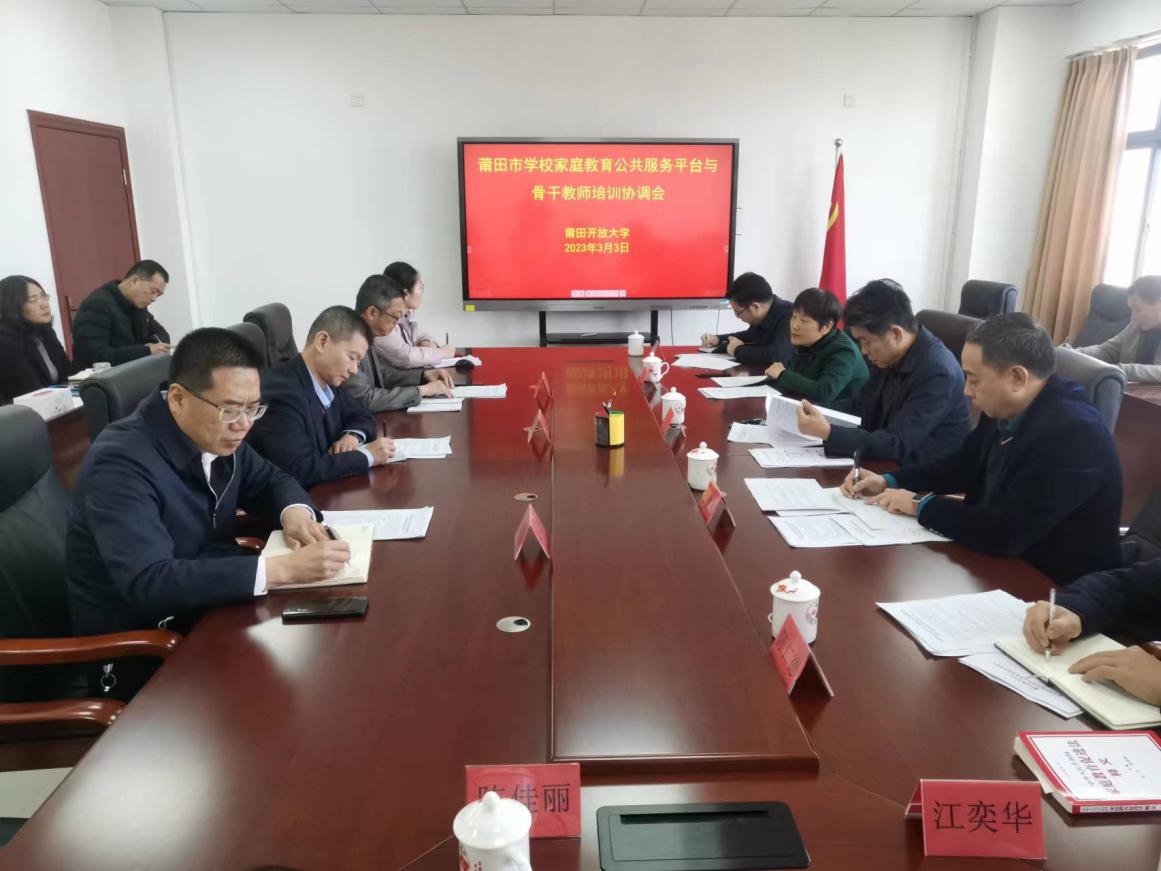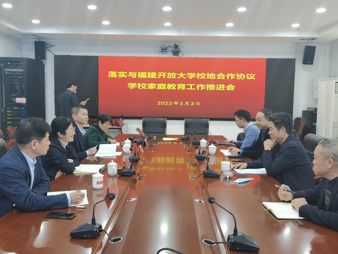 3月3日上午,福建开放大学校长吴国荣携福建开放大学培训学院一行到莆田开放大学召开“落实莆田市人民政府 福建开放大学战略合作协议暨莆田市学校家庭教育公共服务平台与骨干教师培训”调研座谈会,莆田开放大学校长李新洪及其他校领导和中层干部以及莆田市进修学院原院长黄荔军参加会议。