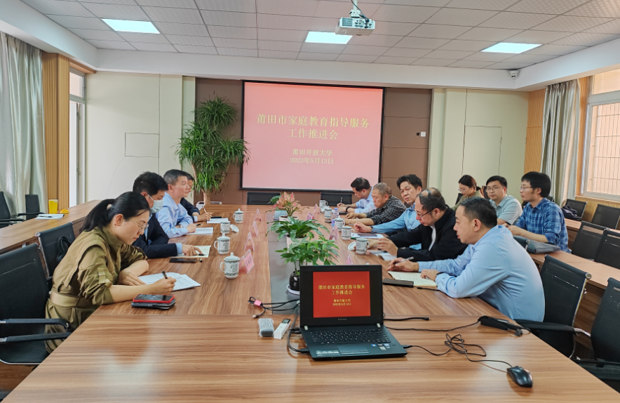 近日,莆田开放大学召开莆田市家庭教育指导服务工作推进座谈会,福建开放大学校长吴国荣、副校长吴建铭,培训学院院长江克英,莆田开放大学校长李新洪,莆田市教育局副局长曾国顺,以及福建开放大学、莆田开放大学相关科室工作人员参加会议。会议由莆田开放大学校长李新洪主持。