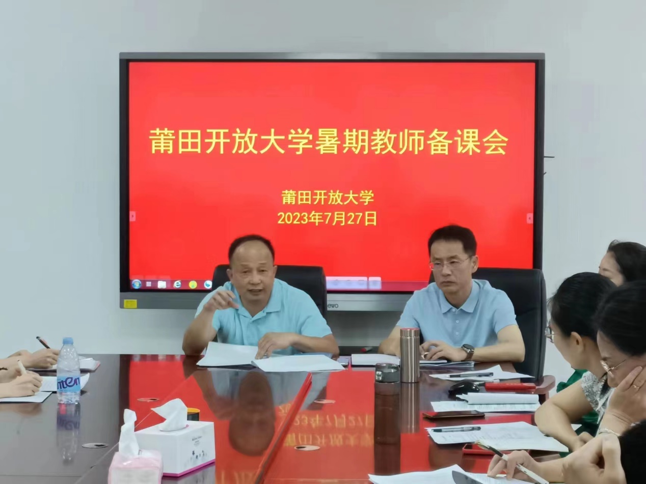 为进一步发挥教师的集体智慧,培养教师合作研究精神,促进教学相长,2023年7月27日,莆田开放大学组织开展暑期集体备课活动,分管副校长陈咏主持活动,全体教师参与。