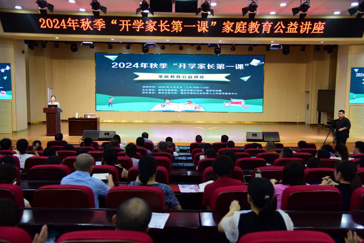 为深入学习贯彻党的二十大、二十届三中全会精神和习近平总书记关于注重家庭家教家风建设的重要论述精神,深化家庭教育指导服务,助力提升家长的科学家教意识和水平,更好地支持孩子的成长与发展,9月8日上午,莆田市2024年秋季“开学家长第一课”家庭教育公益讲座活动在莆田市教师进修学院附属小学举行。本次活动由莆田市教育局、莆田市委文明办、莆田市妇联联合主办,莆田开放大学、莆田市家校社协同育人工作指导服务中心承办,市委教育工委书记,市教育局党组书记、局长彭鲤芳,莆田市委宣传部副部长、文明办主任陈锋,莆田开放大学党委书记李岩峰,市委教育工委副书记、市教育局党组成员、副局长曾国顺,莆田市妇联副主席陈小丽出席活动。